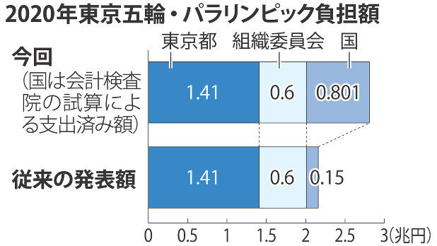 大きく上回った。検査院は30年度以降も多額の支出が見込まれるとしており、大会組織委員会と東京都が見込む