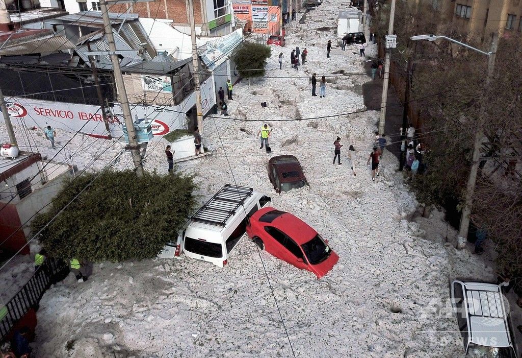 メキシコの大都市で大量のひょう 最高で2m、押し流された車も