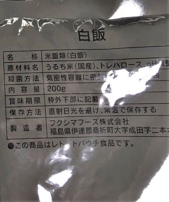 携行食。まず袋の中で加熱剤に水を加えて加熱します。今日は豚肉生姜焼き。五目チャーハンと白飯がついてきます。(。-∀-。)