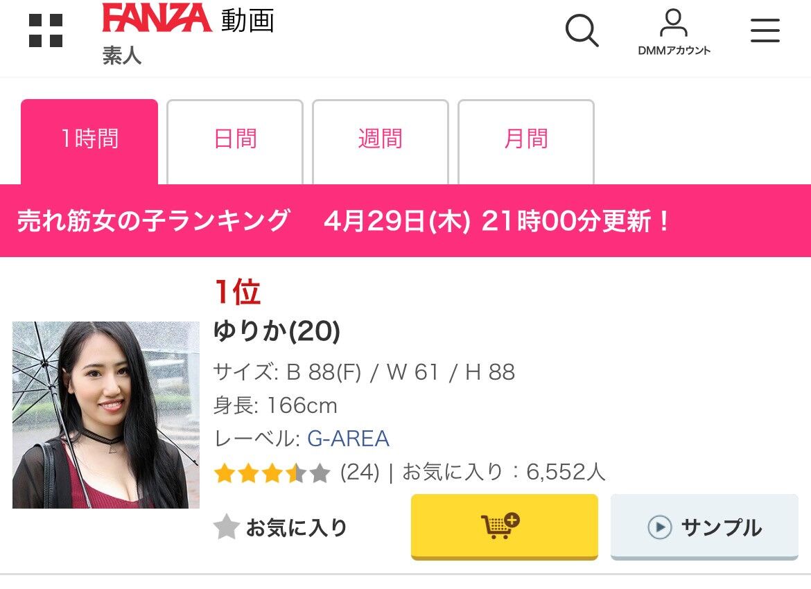 売れ筋女の子ランキング 4月29日(木) 21時00分更新!