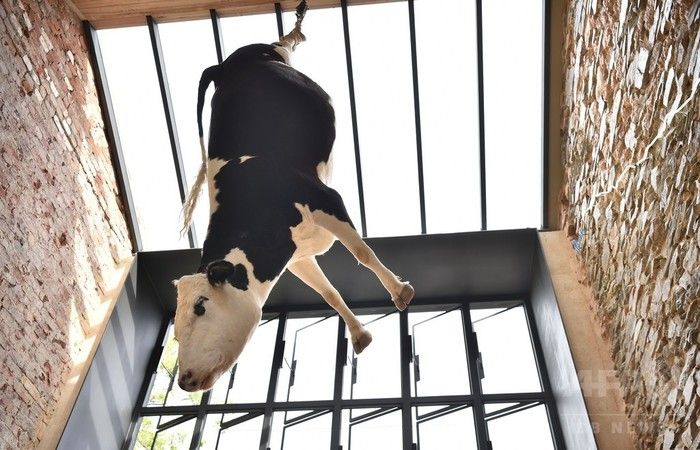 牛のはく製を店内につるしたオーストラリアのレストランに対し、「残酷だ」としてソーシャルメディア上で批判が巻き起こっている。