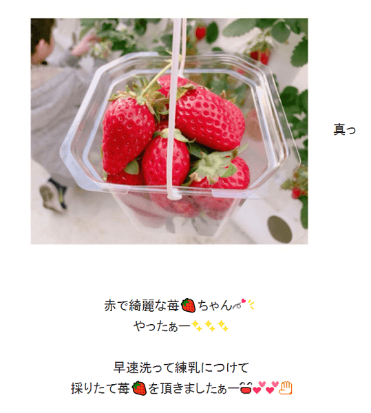 「練乳につけて採りたて苺を頂きました」辻さんは2018年1月29日のブログで、千葉県富津市の