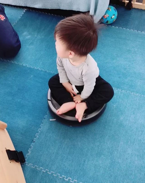 ルンバが動き続ける動画をアップ。いつもこうやって息子がルンバを“動く乗り物”にして遊んでいることを伝えた。