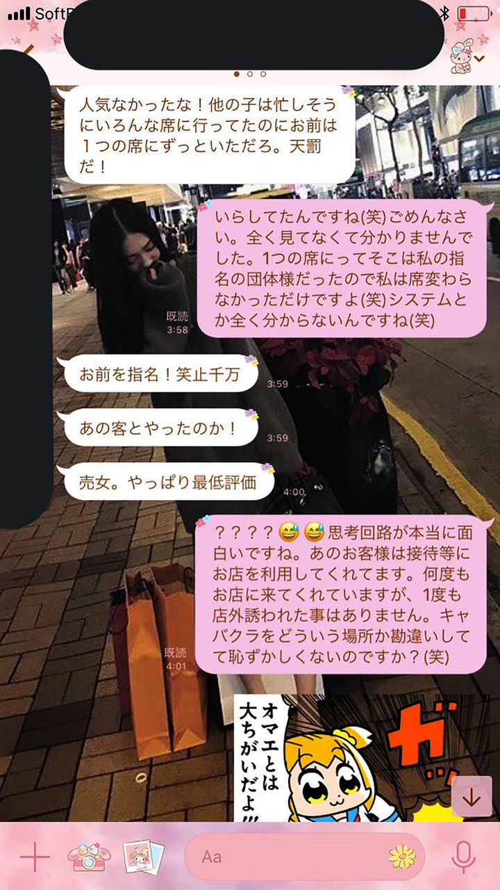 とはいえ、キャバクラ嬢の心の中ではブチギレ激怒しているのがわかるLINEメッセージにもなっており、ピリピリとした空気も感じる。