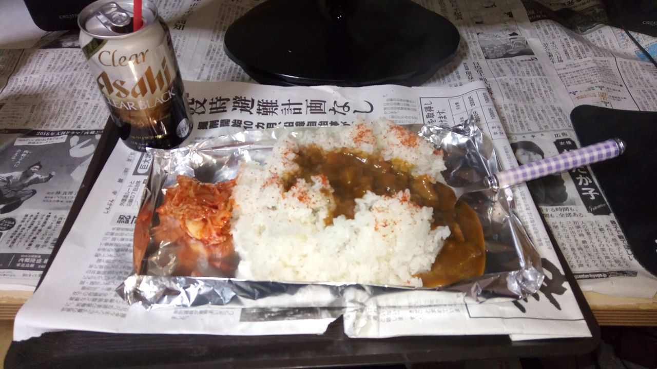 ランチョンマットの代わりに"しんぶん赤旗"が敷かれている