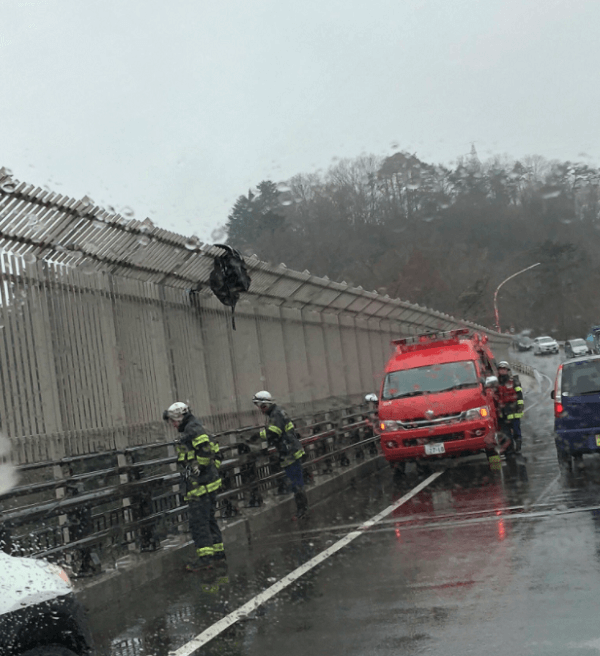 画像からは、転落防止の柵にバッグのようなものが引っ掛かり、消防隊らが橋下を覗き何かを確認している様子がわかります。