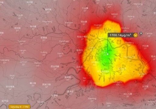 武漢と近くの都市、また、中国全土で高い数値の亜硫酸ガスが検出されている。