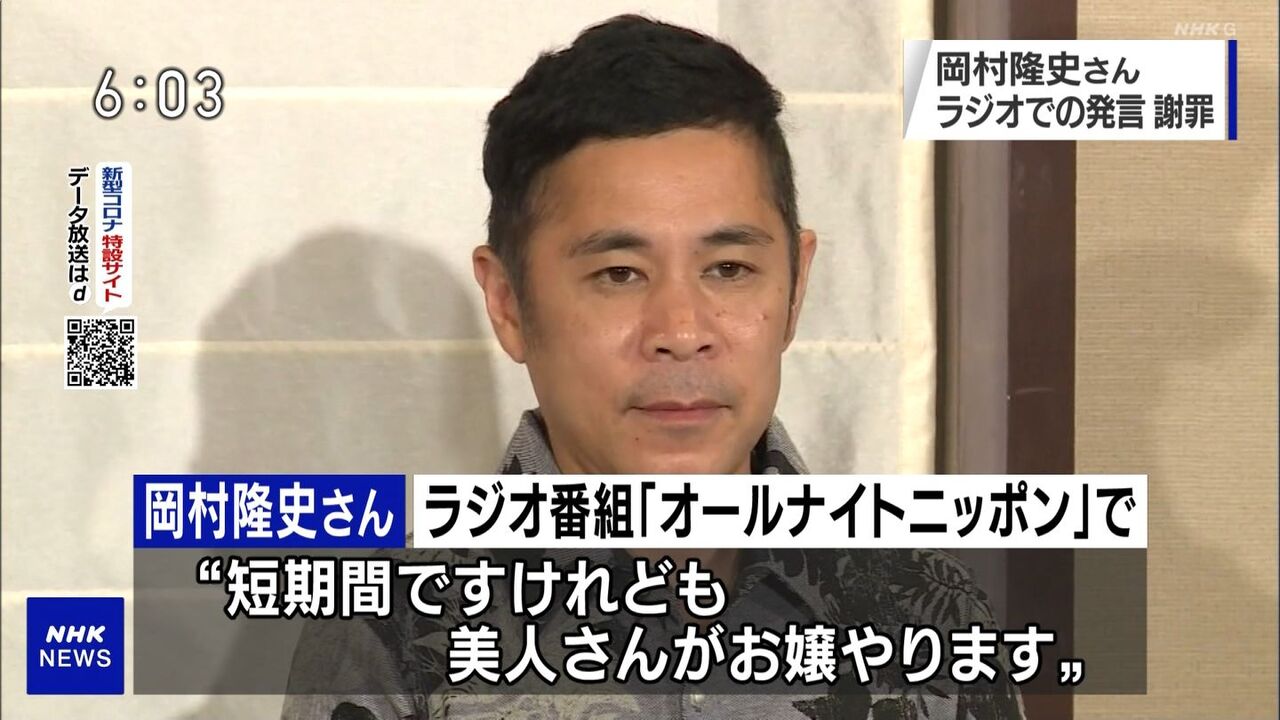岡村隆史さん ホームページでラジオ番組の発言を謝罪