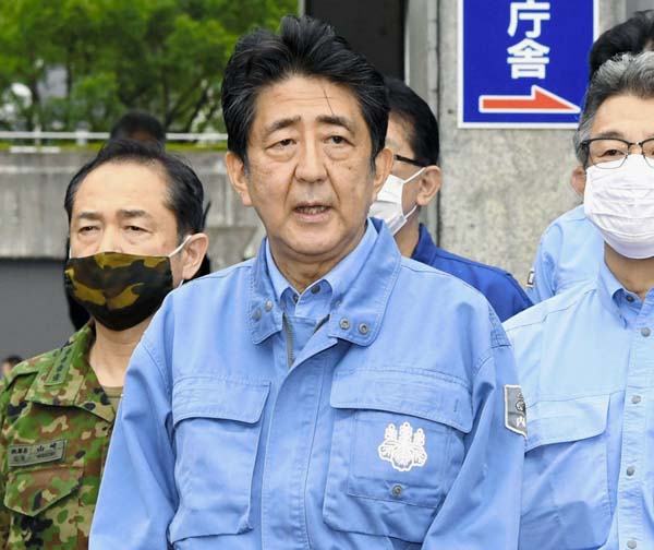 発生から10日目を迎えた13日、安倍首相は現地入りし、14人の犠牲者を出した球磨村の特別養護老人ホームや人吉市などを視察した。