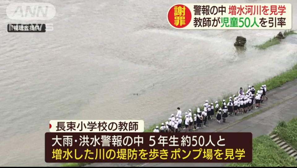 警報の最中に…教師が児童50人連れ増水河川を見学