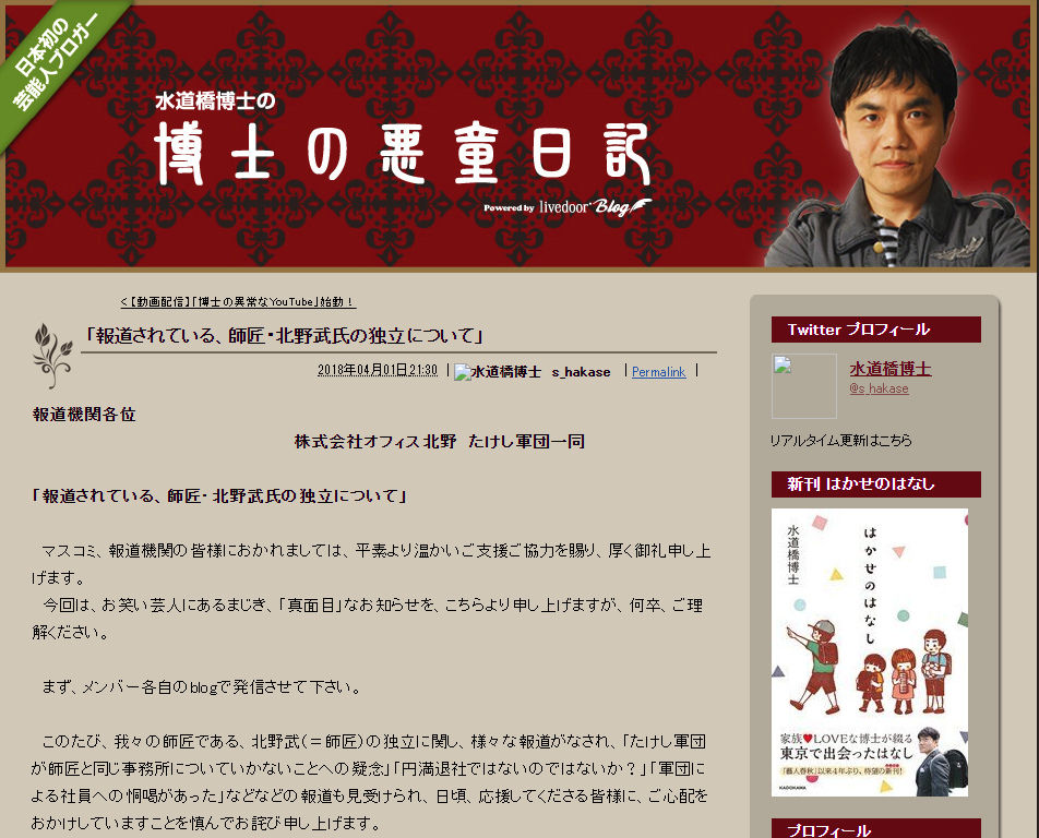 ここで水道橋博士が自身のブログにその真相を投稿している。