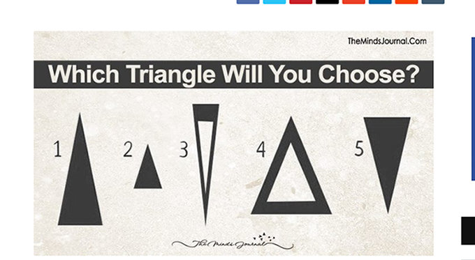 私たちの性格は十人十色で、それぞれ一長一短があるもの。しかし、各々を特定の人格タイプに振り分けることが可能だという。そのやり方は、下の画像から三角形を一つ選ぶだけというシンプルなもの。自分では違うと思っていても、心理の底に眠る自身の性格や、ライフスタイルの在り方が見えてくるかもしれない。