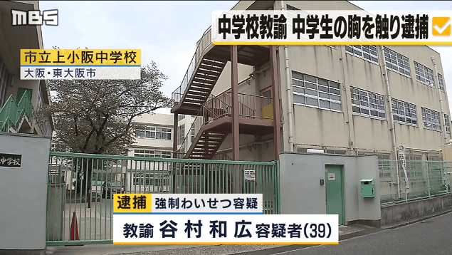 大阪府東大阪市立上小阪中教諭の谷村和広容疑者(39)を再逮捕した。