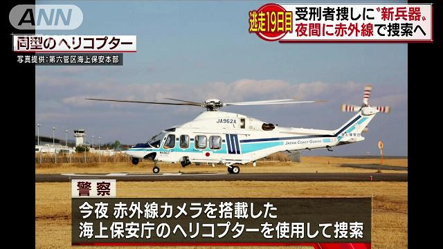 逃走を続ける受刑者の捜索に、新たに赤外線カメラを搭載したヘリコプターが投入されます。