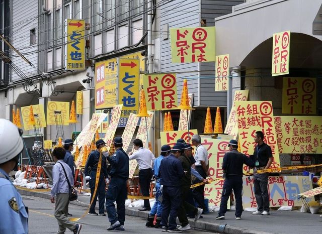 同署などによると、今年4~6月、JR西が恐喝や詐欺などを行っているかのように示唆する看板などを同社前に設置した疑いが持たれている。JR西が5日、誹謗中傷を受けたとして同署に被害届を提出。この日は同署員約20人が看板などを取り外した。今後、同社社長らから設置の経緯などについて事情を聴く。
